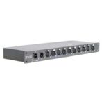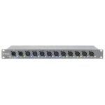 El DMX10-3 es un divisor DMX de 10 puertos para montaje en rack con entradas duales y salidas XLR DMX de 3 pines libremente asignables.