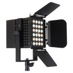 Estos mejorado TVL3000-II DW (Dual White) cuenta con 24 LEDs, ángulos de haz variable, viseras ajustables, funcionamiento sin parpadeo para televisión abierta y de cine, DMX de 5 pines de entrada / salida y Powercon en conexiones y batería opcional para aplicaciones móviles. del panel de control de pantalla LED y botones 72W consumo de energía máximo.