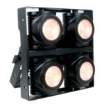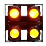 El DTW Blinder 700 IP con clasificación IP65 cuenta con (4) LED COB 2 en 1 de alta potencia de 175 W de color blanco cálido/ámbar, un amplio ángulo de haz de 67°, control de rango de temperatura a todo color más control de canal independiente Dim-to-Warm (1800 K – 3200K), filtros de haz estrecho de 15° fácilmente acoplables (incluidos), control de píxeles, enfoque panorámico ajustable manualmente, modos de curva de atenuación variable, efectos estroboscópicos, funcionamiento sin parpadeo para TV y cine