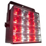 Este dispositivo 2-FX-en-1 integra un estroboscopio LED RGBW 4-EN-1 tradicional + efecto de secuencia en matriz de 16 zonas. El efecto de secuencia en zona de matriz brinda a los diseñadores de iluminación la posibilidad de crear emocionantes espectáculos de luz, dinámicos y llenos de energía.