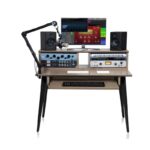 Gator Frameworks Estación de trabajo de escritorio de la serie Elite con estantes ajustables (8U) y bandeja deslizante para teclado; acabado de arce natural (GFW-ELITEDESK-GRY)