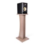 Par de soportes para altavoces Elite que muestran elegantemente altavoces en el estudio, sala de estar, suelo de exposición o entorno similar