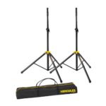 El paquete de soportes para altavoces HERCULES Stage Series SS200BB incluye dos soportes para altavoces con base de trípode SS200BB y la bolsa de transporte.